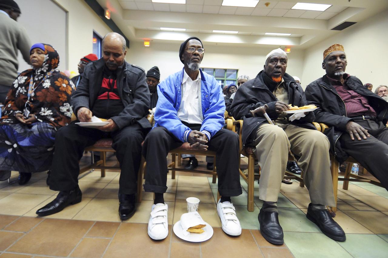 A group of Somali elders gather to listen to City Councilman Abdi Warsame.