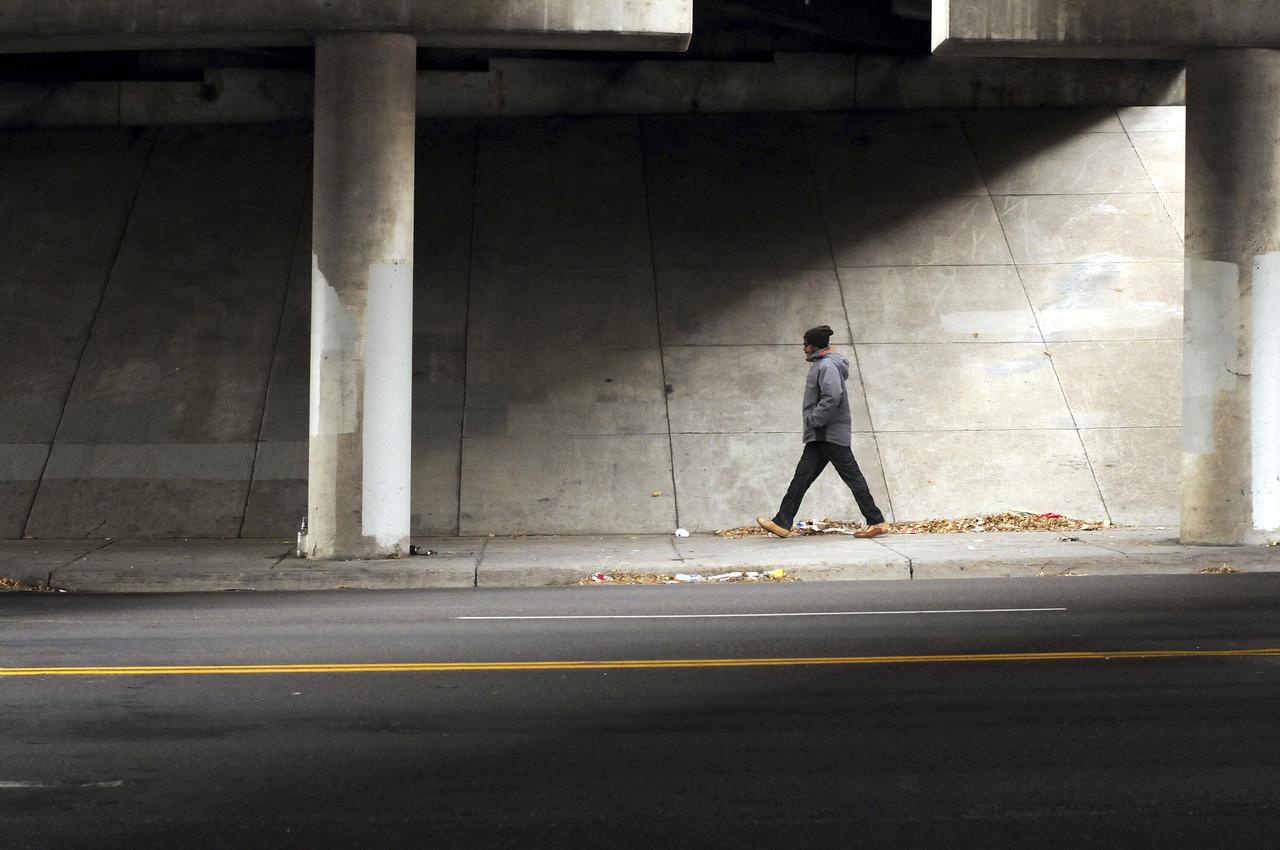A Somali man walks under a bridge near the Cedar-Riverside area of Minneapolis, also known as "Little Mogadishu."