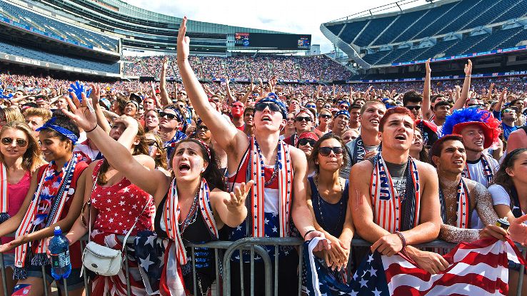 The scenes on the ground have been just as dramatic. Intercut into every U.S. game broadcast has been staggering live scenes from Chicago, Kansas City, Dallas and San Diego, as public spaces have palpitated with football-loving Americans and the entire nation has resembled the Portland Timbers' stadium on gameday.